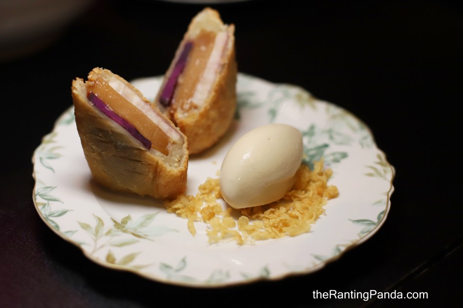 Alternatively, there is also the Tri-Layered Nian Gao sandwiched between yam and purple sweet potato, served with a scoop of Osmanthus Oolong ice cream.