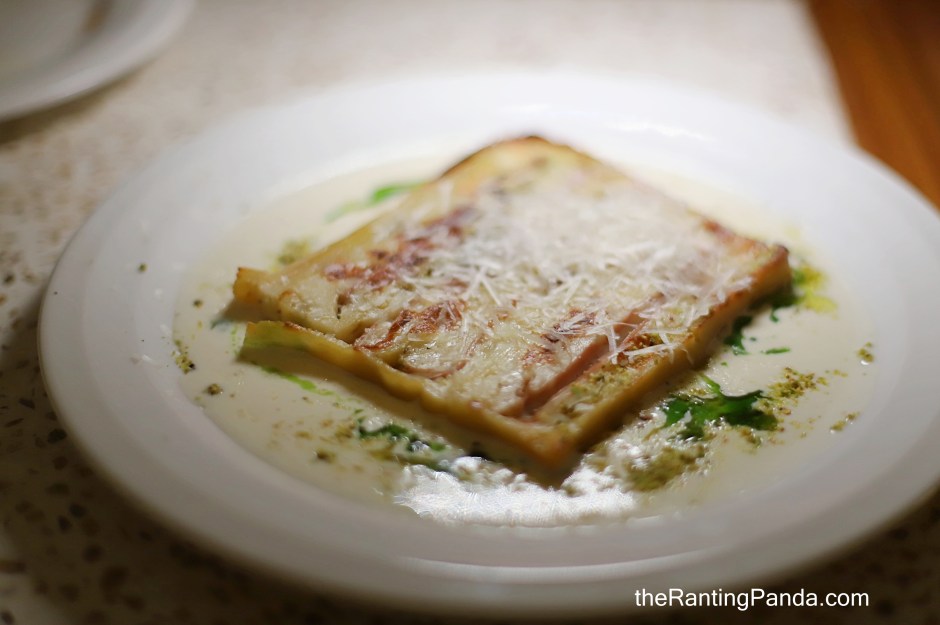 For pasta, it is made in-house ala minute with flour from Naples that is a balanced mix of semola and 00 flour, local free-range eggs and Sicilian olive oil. I had the ‘1000’ Layers Lasagna (S$36) that is prepared the exact way of Egon’s mother in Sicily with layers of Provolone del Monaco and a Bronte Pistacchio pesto.