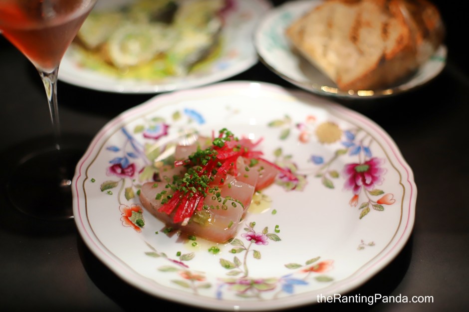 I love the Hamachi Amberjack (S$24) with kizami and radish and Bluefin Tuna (S$33) with wasabi and tamari, which is refreshing and easy to go with some wine white.