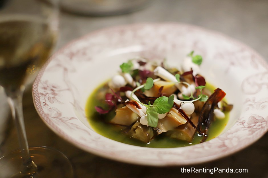 The menu is organised in sharing plates style, and I started with the Coastal Abalone Aguachile, Aubergine, Seasonal Mushrooms (S$26) where the Mexican Aguachile sauce lends it a slightly spicy flavour. Interesting combination of aubergine and abalone in a Mexican inspired sauce.