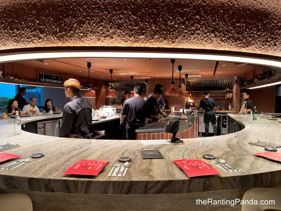 The dining space is huge. I sat at the Open Flame Chef Table, a U-shaped counter seat layout which seats up to 18 diners. This is the best table for couples or small groups where you get the best view of the open kitchen action.
