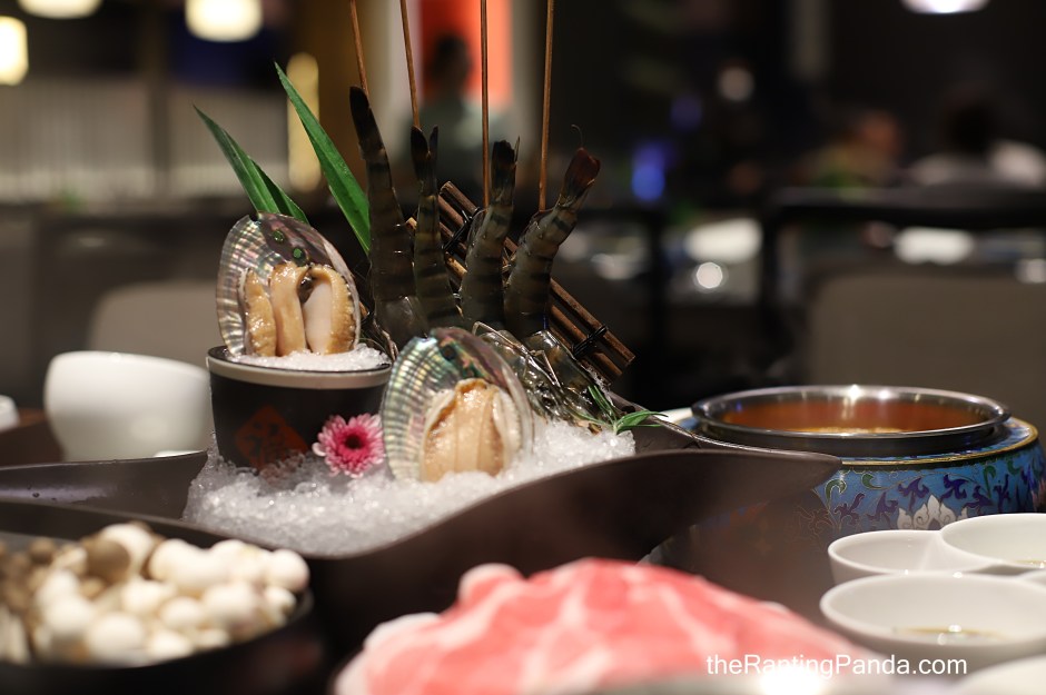 You can opt to go ala carte, or you can go for the Tiger Prawns, Abalone and Premium Beef Set for 2 Pax (Original Price: S$134++/Pax, Member Price: S$149++/Pax) which comes with two soup bases and condiments alongside sharing platters of A4 Japanese Wagyu, Hokkaido Iberico Pork, Tiger Prawns, 5-head Abalones, Salmon Sashimi, Fresh Vegetables, Matsutake Dumplings and accompanying sauces.