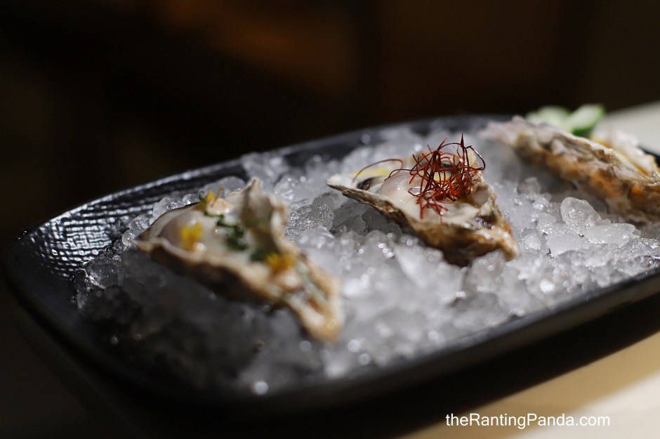 The Food You can choose from an ala carte menu, or from a newly launched Chef’s Menu (S$98/6 courses or S$78/4 courses). I had the 6-course menu, and my meal started with the Chef’s Special Selection of Oysters, a uniquely dressed and distinct trio of plum-infused horseradish and shiso, passionfruit ponzu and Tsuyataro cucumber and cold pressed olive oil. The oysters are plump and fresh to say the least.