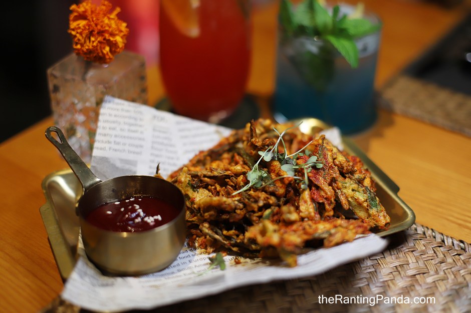The Food The menu at the restaurant is a mix of small and large plates designed for sharing. I started with the Togarashi Tossed Bhindi Jaipuri (S$15), a rendition of Jaipur’s popular chaats featuring crisp fried okra sprinkled with shichimi tōgarashi and a72-hour fermented beetroot chutney ketchup. A crispy snack which is easy to go with some drinks, and you get a tinge of spiciness.