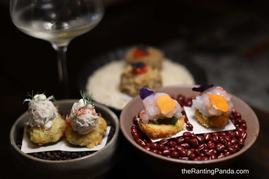 A trio of starters to kickstart the meal – Prawn Toast inspired by Taiwanese Moonlight cakes (月光饼) where sweet Ama Ebi from Taiwan rests atop a panko-crusted biscuit, finished with a drizzle of Taiwanese lovage (欧当归) oil; Snow Crab Cake with delicate flakes of Hokkaido Snow Crab atop a creamy crab croquette enhanced with a touch of sour cream and dill; Five-spice Duck Croquette made from trimmings of the duck main course and finished with a bold note of Taiwanese fermented chilli.