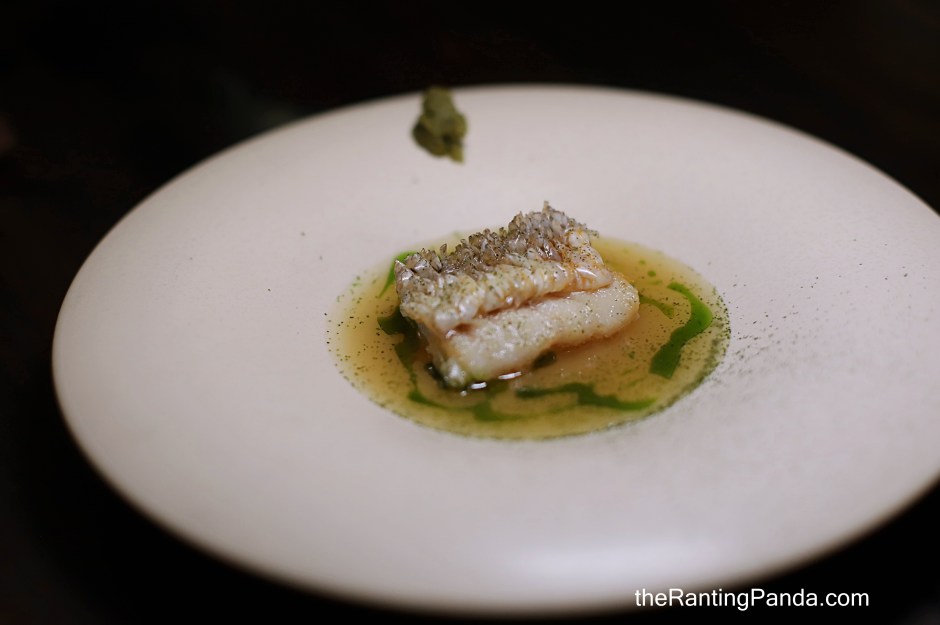 Inspired by the traditional dish Suan Cai Yu (酸菜鱼, fish with pickled mustard greens), Chef Javier uses Amadai (甘鯛, Tilefish) sourced from the South China Sea near Kaohsiung. You get a beautifully fried fish with crispy, flaky scales, accompanied by a rich Katsuo dashi stock made from fish bones and butter, along with pickled Taiwanese green chillies served on the side.