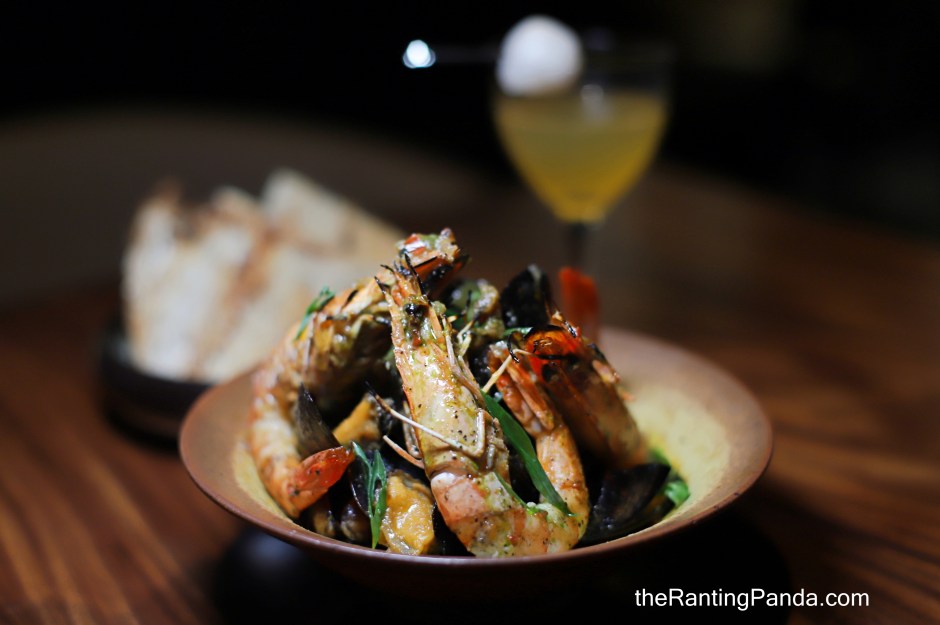 For big plates, I had the Mussels & Gambas Al Ajillo (S$33) where NZ mussels and Japanse prawns are briefly cooked in a piping hot pan, then mixed in a housemade prawn broth of sofrito (blend of tomatoes, onions, peppers) and garlic. Served with slices of toasted sourdough.