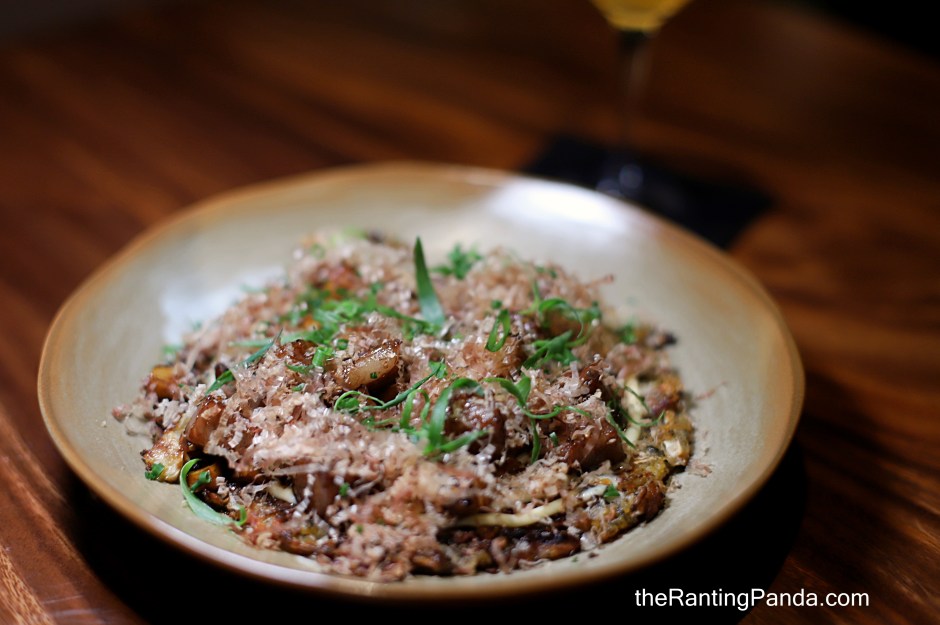 The Wagyu Beef Cubes & Curtido Pancake (S$38) remains me of okonomiyaki and here we have pan-seared Kagoshima Wagyu Beef Ribeye A4 cubes and king oyster mushrooms that sit atop a savoury pancake made from curtido – a relish common in Central America made of fermented red cabbage, onion and carrot – and finished with a drizzle of yakiniku sauce and bonito flakes. This is a filing dish if you are looking to have something more substantial, though it was quite greasy as well.