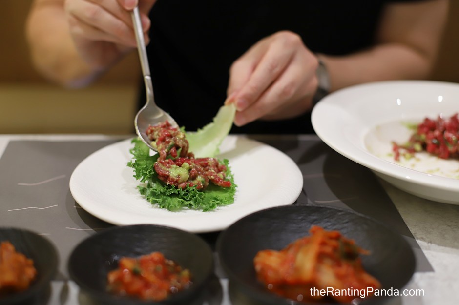 My meal started with the Tartar (S$37) which features house-made raw beef tartar served with avocado and topped with snow flower cheese. You can have it as its own which is delicious, or wrap it around the lettuce provided as part of the complimentary banchan.