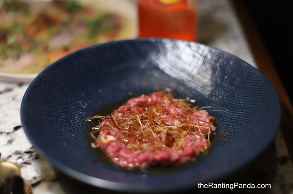 The first starter I tried was the Drowning Beef (S$20) with Burnt Tsuyu, Charcoal Oil, Crispy Leeks & Garlic Chips.