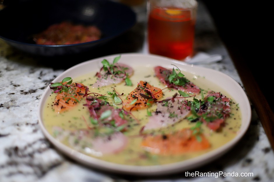 The lIWIl (S$26) is a playful acronym of ‘it is what it is’ and it features Seasonal Fish, Wasabi Vinaigrette, Dashi Jelly & Olive Dust. For my seasonal fish, I had a trio of salmon, amberjack and tuna and it is overall very refreshing as the fishes are fresh.
