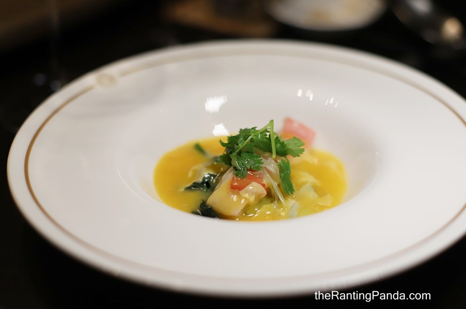 My meal started with the Xiao Long Bao (S$16), a new seasonal dish exclusive to the Chef’s Table Experience. The unique flavour here is that the Xiao Long Bao is wrapped with the seasonal Monkfish Liver (Ankimo), my first time having it in such a way.