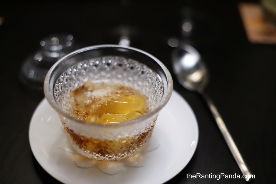 For dessert, I had the Szechwan Jelly with Seasonal Fruits (S$12) where the seasonal fruits jelly is drizzled with a blend of Japanese black sugar syrup and five-spice powder.
