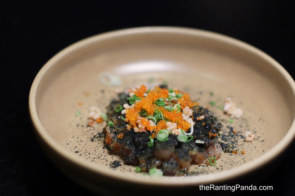 For smalls, I had the Dry-aged Hamachi, Kimchi, Puffed Rice (S$26) which features 16-day dry-aged hamachi crudo tossed in kimchi and dusted with wakame powder. It is served with puffed rice, spring onion, and finished with flying fish roe.