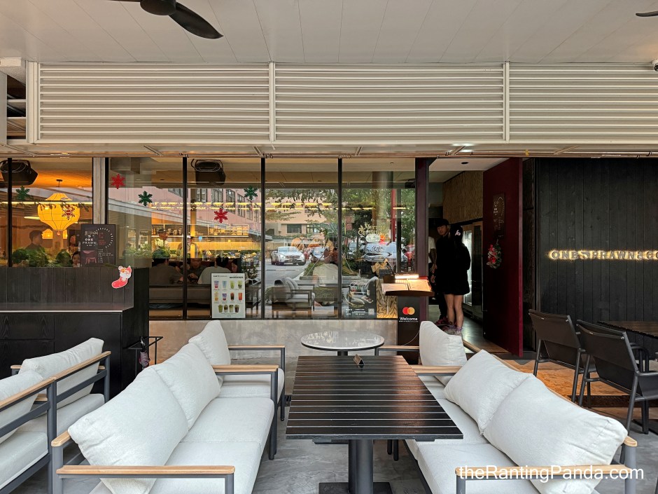 The space of One Prawn & Co is spacious with a mix of outdoor and indoor seating.