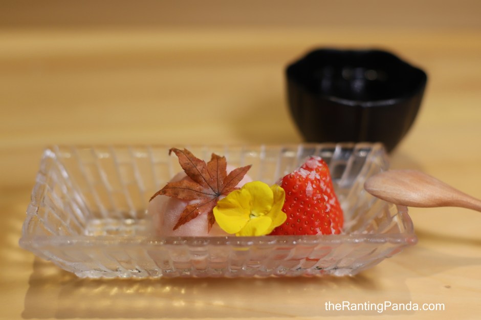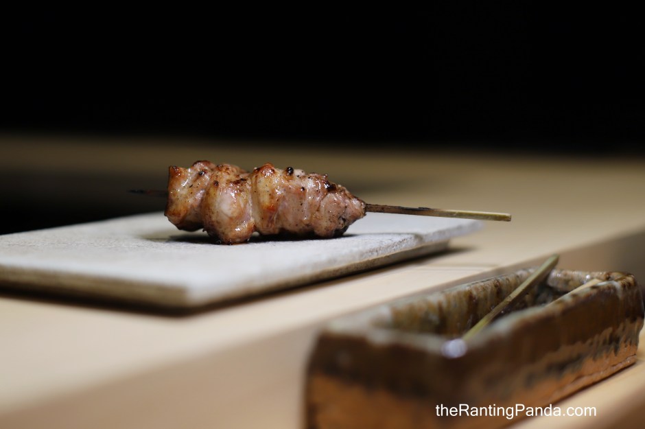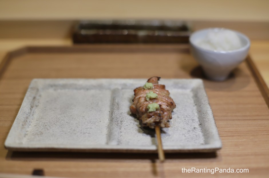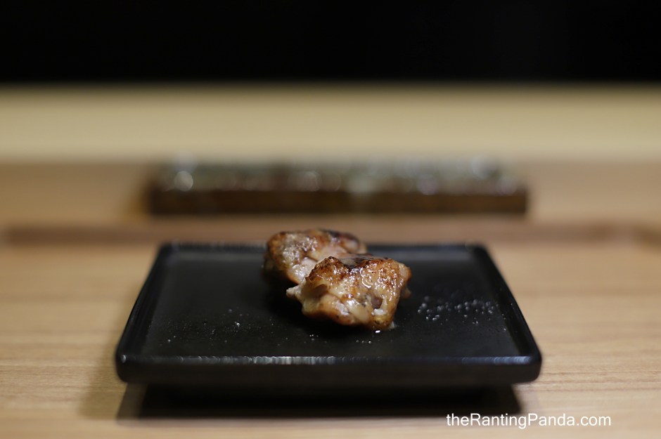 The chicken thigh course is a plump strip of chicken meat which goes well with a tinge of sansho pepper.