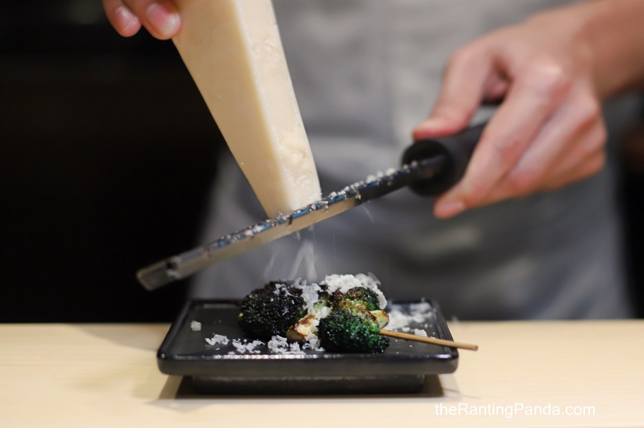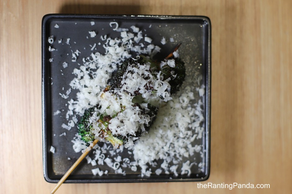 Grilled over charcoal for about 30 minutes, the best part is the broccoli is topped with shaved Italian parmigiano cheese aged for a year.