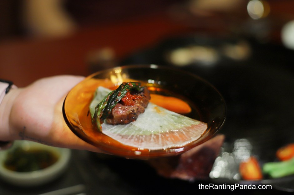 There are so many ways to enjoy the well-marinated beef such that no sauces are served or required – I had the grilled beef with black peppercorn (which is delicious), wrapped in cheese, wrapped in white kimchi which helps to cut through the richness of the beef, or you can just enjoy it as is.