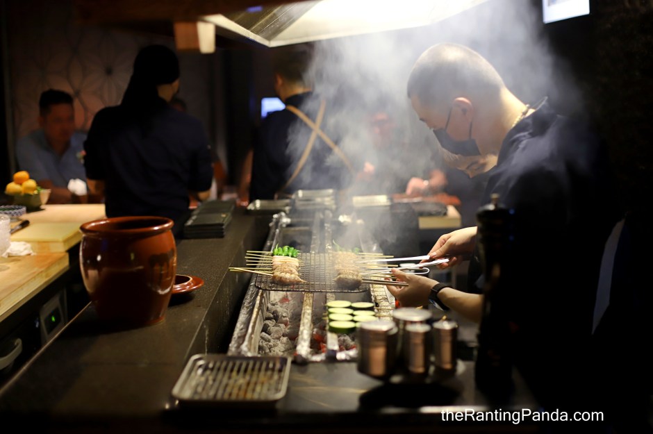 The space of Yakitori One comprises of indoor and outdoor seats, where the indoor seats are around the counter facing the open kitchen where the chef does the grilling of the skewers.