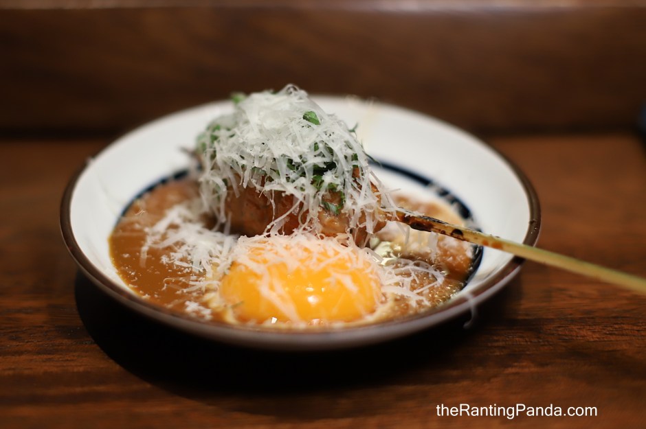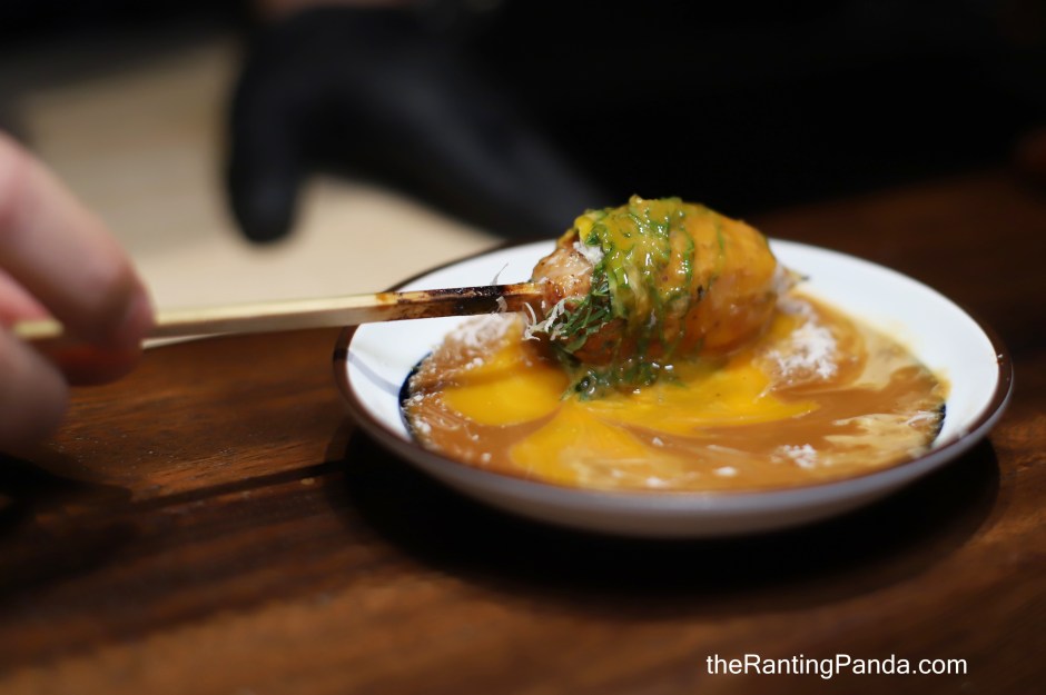 Tsukune – a mix of corn and cartilage meat, and it comes with an egg yolk sauce with cheese