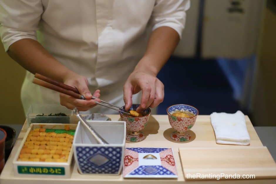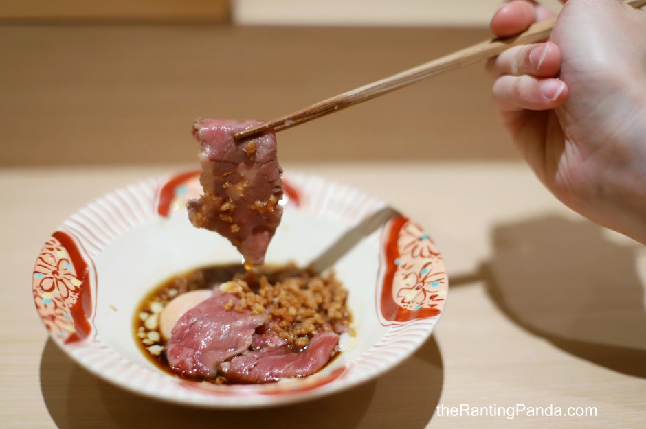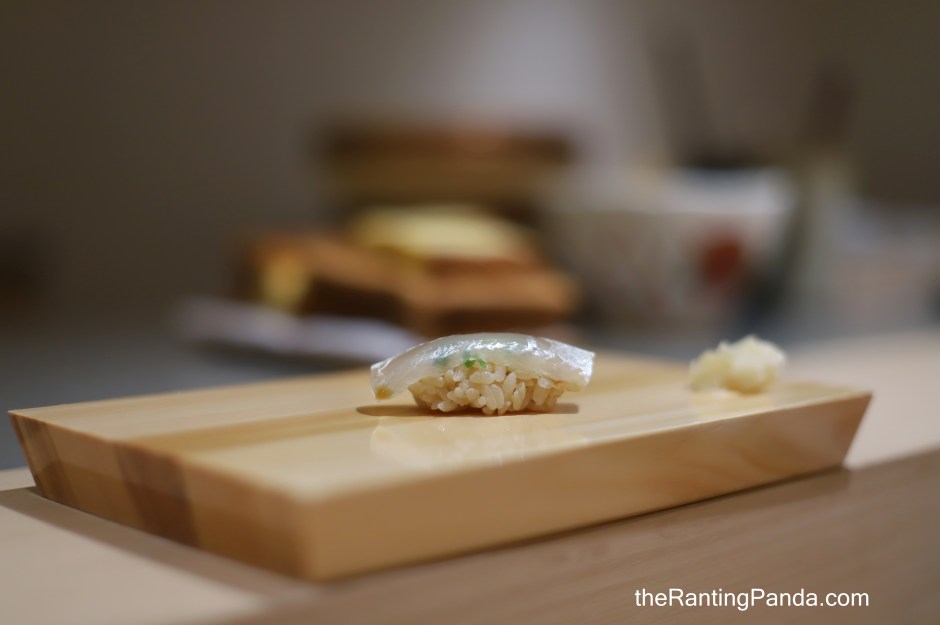 It is not common to have a sukiyaki course in a sushi omakase meal and I was delighted to have this delicious serving of Miyazaki A4 wagyu beef topped with sushi rice puff.