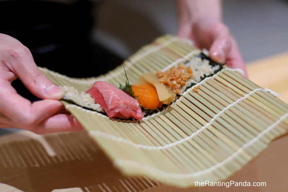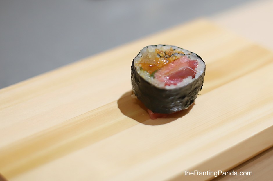 The last savoury course is a big handroll of thick slices of tuna which is full of umami.