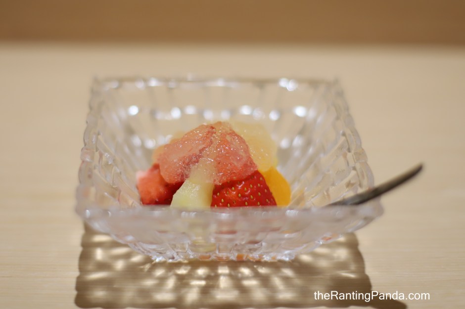 A refreshing bowl of white wine jelly, Setoka orange and Aomori strawberry to conclude the meal.