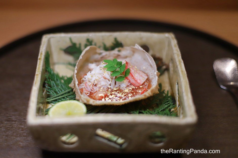 Next up was hand shredded Hokkaido Kegani Horsehairy Crab with Tomato Jelly along with gold flakes. A delectable and easy way to enjoy this winter delicacy.