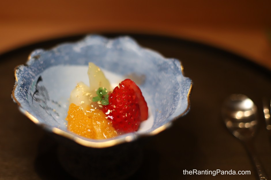 Last but not least to conclude the meal, I had a bowl of Seasonal Fruits of Strawberries from Miyagi, Okayama Muscat Grapes, Oranges from Ehime served with Housemade Warabi Mochi.