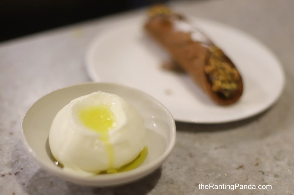Dessert wise, there is the classic Tiramisu (S$11) though I went for the Cannoli, pistachio ricotta, dark chocolate (S$8) and Gelato con Olio, mile gelato, Umbrian extra virgin olive oil, crunchy salt flakes (S$6).