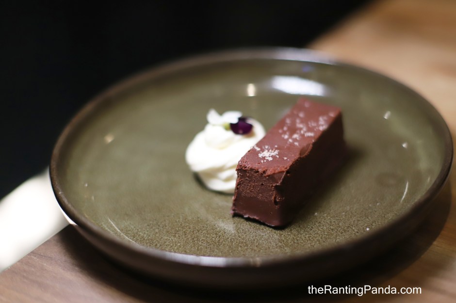 For dessert, I went for the simple sounding Nama Chocolate (S$8) which every chjocolate lover should go for. It is an intense and rich Valrhona Dark Chocolate 70% with Chantilly Cream and topped with some Awayuki Salt.