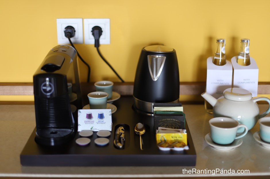The mini bar in the living room also comes with complimentary tea and coffee.