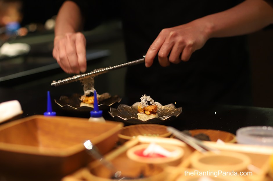 The dining ambience at Sapoto is sleek and minimalist looking, where the dark entrance leads to a dimly lit counter seating setting where every diner gets a good view of the grilling action by the chef as it is open concept.