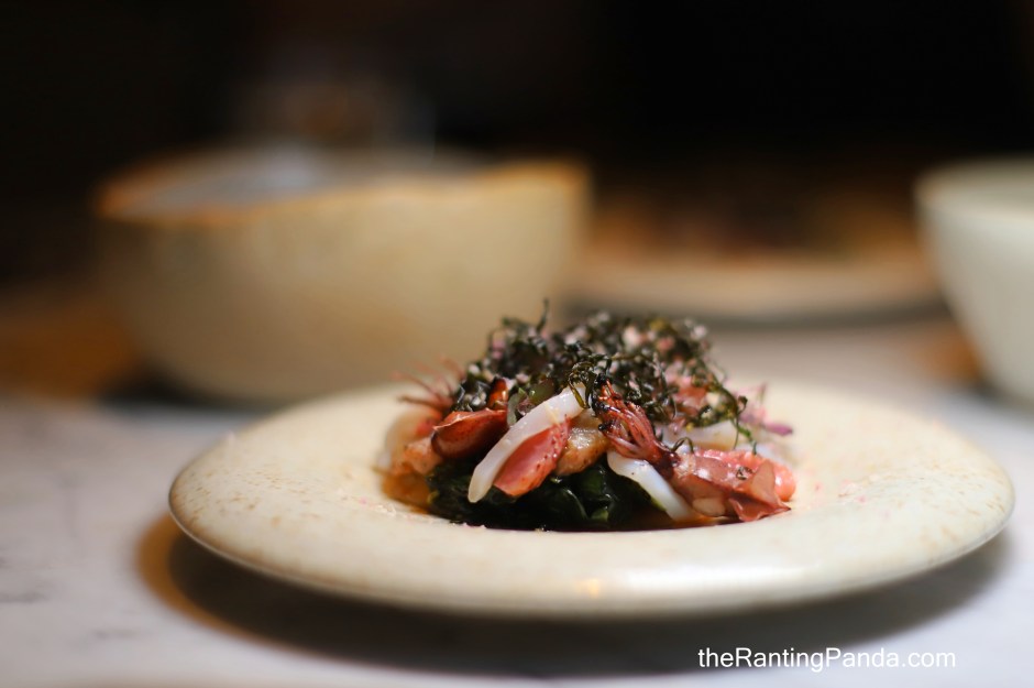 The Grilled Firefly Squid builds on the classic pairing of jambu and dark soy sauce, and it tastes just like rojak. The firefly squid carries layers of umami from soy, pickled young ginger, and house-made squid powder.