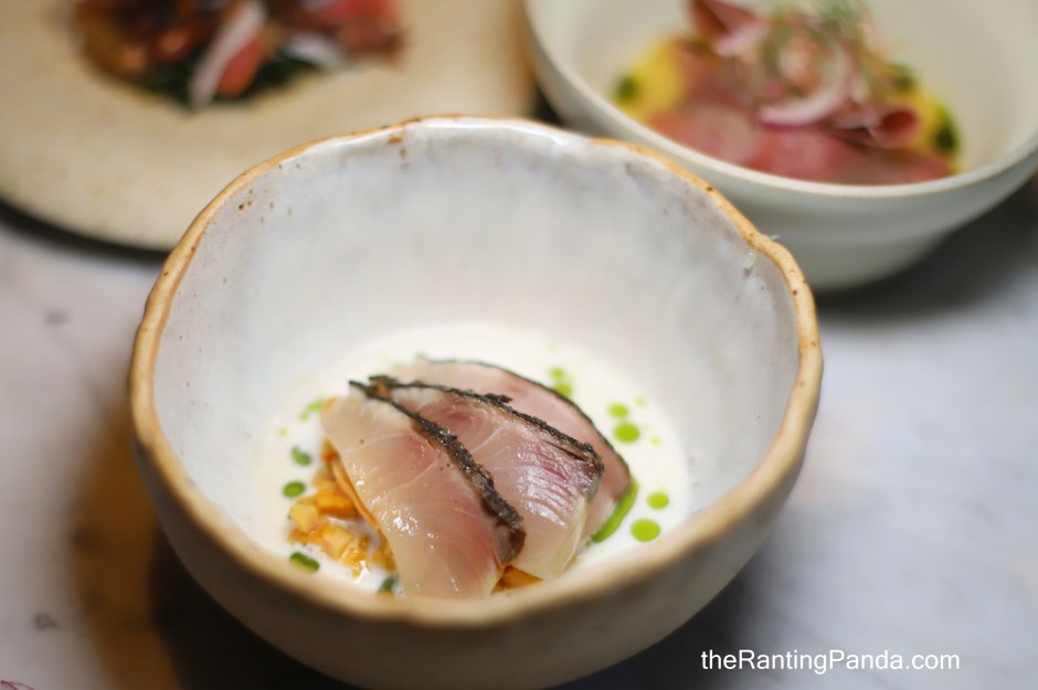 Aged Kanpachi- pink guava l mussel l coconut milk