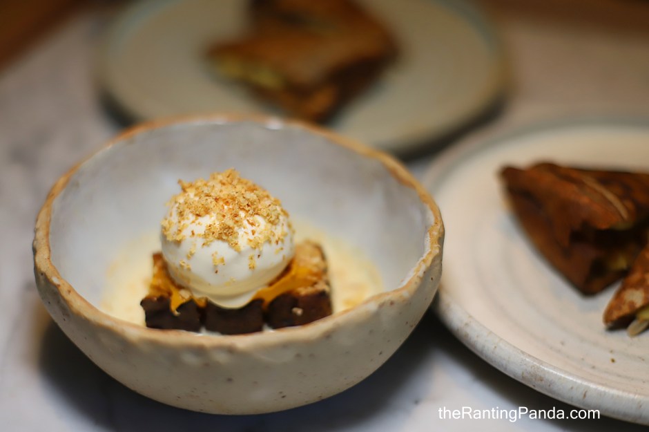 The Pumpkin Bingka (S$14) comes with tempeh and white miso ice cream, while the Min Jiang Kueh (S$12) is a modern take as it is filled with cempedak and peanut brittle.