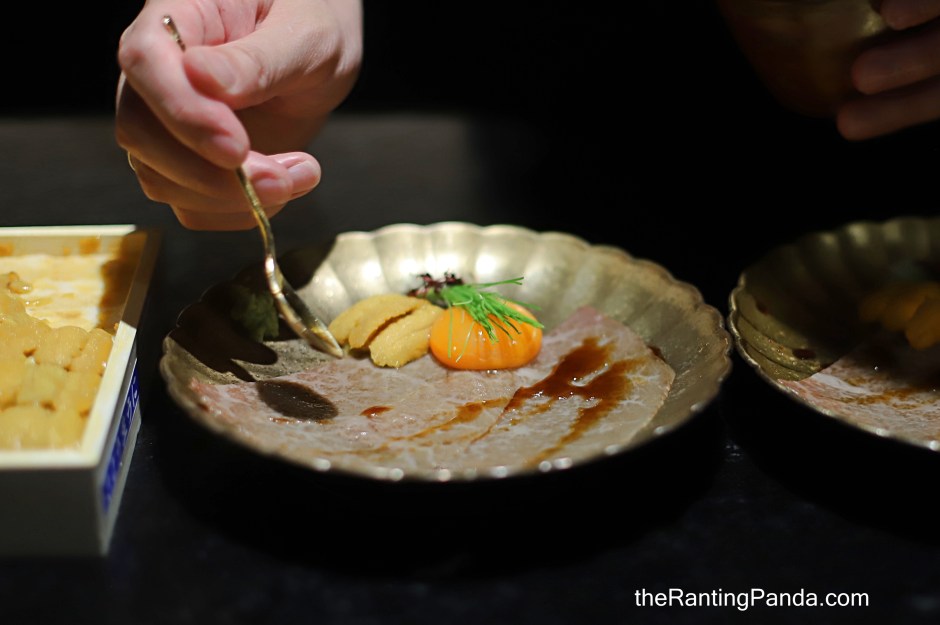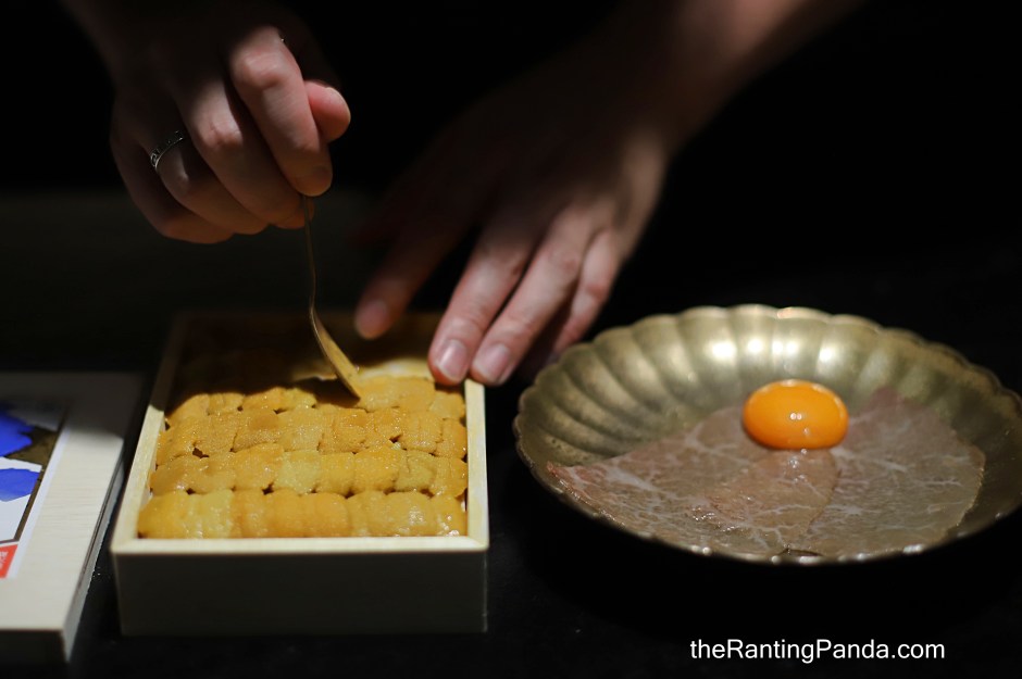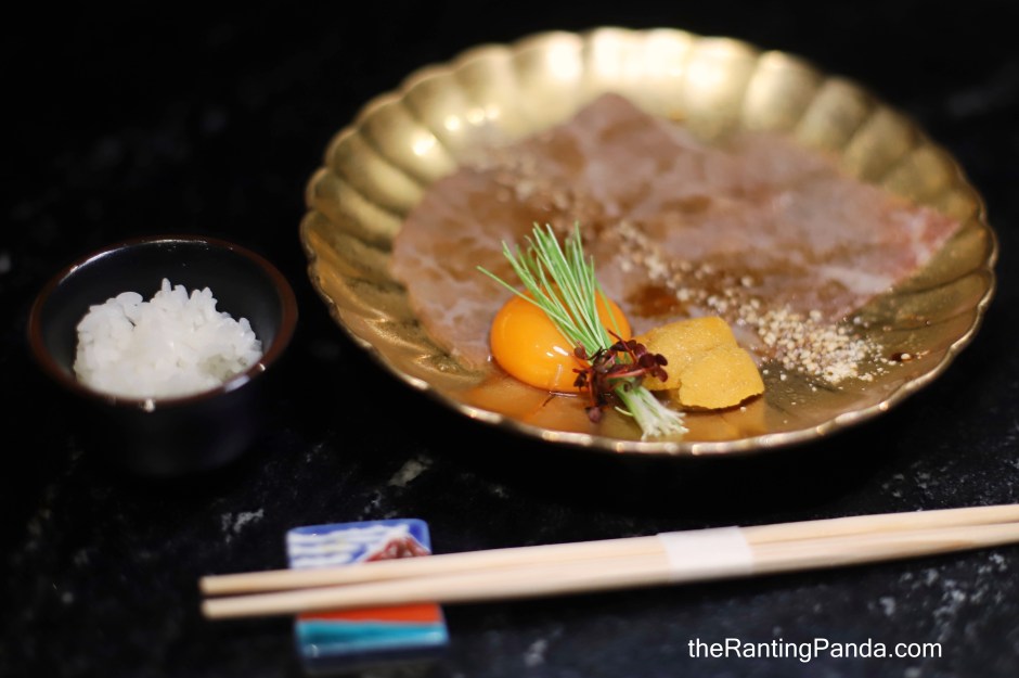 New “Uniku” (Uni & Meat) – Uni, A5 Black Wagyu Uchimomo (Top Round), Egg Yolk