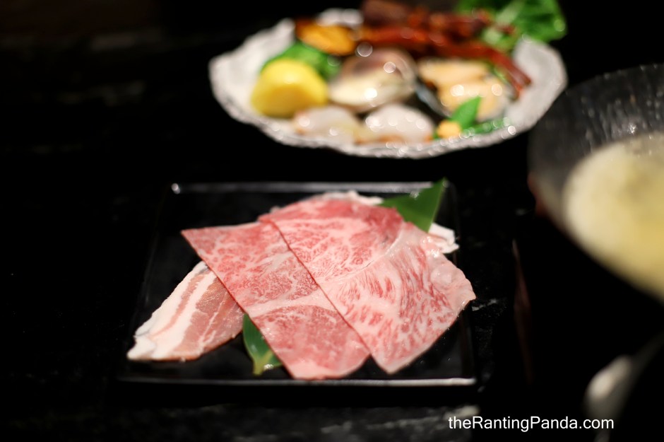 For more protein, the hot pot also comes with slices of A5 Kagoshima ribeye and Hokkaido pork belly to enjoy as shabu-shabu.