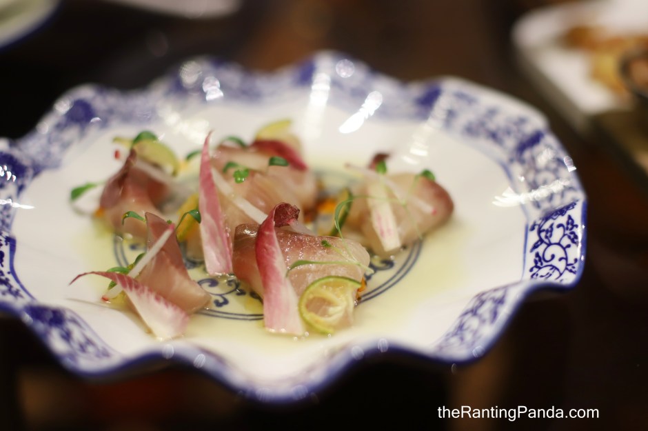 A refreshing cold starter to have is the Marinated Kingfish (S$19.9), a ‘yusheng’ inspired dish where the Kingfish sashimi is dabbed with soy sauce then tossed in a sauce made with chilli oil, radish, lemon balm, She De Baijiu, and calamansi juice.