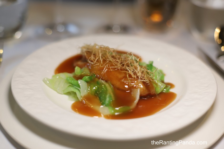 For a fish dish, I had the Braised Wild Golden Croaker, Fresh Bean Curd Sheet, Iceberg Lettuce, a nostalgic Cantonese fish dish simmered in a broth of chicken consommé where the croaker sits on a delicate ‘fuchok’ (fresh bean curd sheets). The braised sauce is delicious.