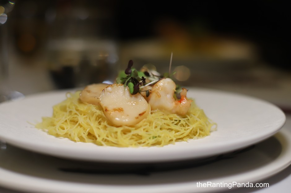 For carbs, the Sauerkraut Consommé Braised Vermicelli from Hsinchu Taiwan, King Prawn, Scallop, Chinese Celery is a light option where the Hsinchu vermicelli is braised in a