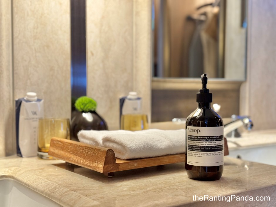 If you have been a fan of Australian luxury toiletries brand Aesop, you will be pleased that the bathroom amenities are all by Aesop. My only gripe here is that there is barely any natural light in the bathroom which is quite a pity.