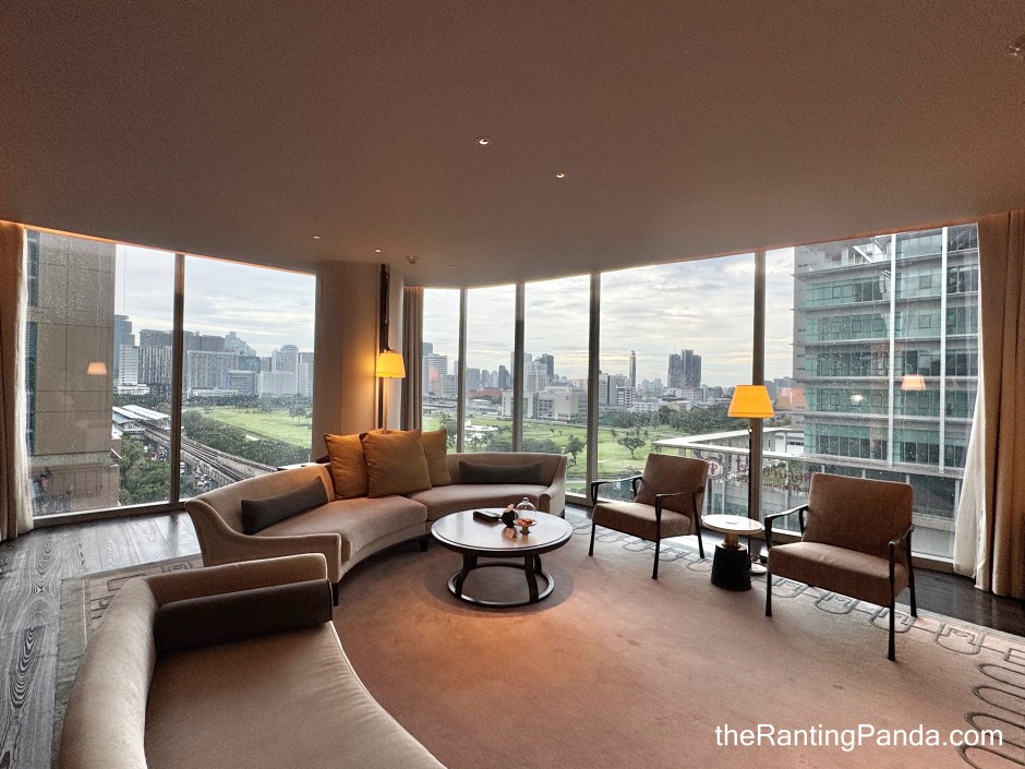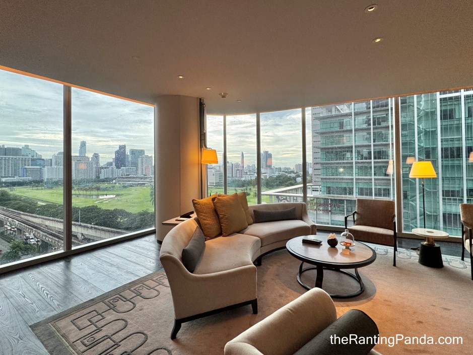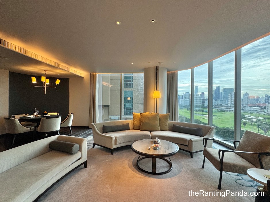 Right from the size of the door entrance itself, it is already much wider than the King Deluxe Room City View. Upon entering the suite, to the right is the spacious living and dining room area with a view of the Royal Bangkok Sports Club. You get floor to ceiling windows so the whole suite is showered with ample natural light.