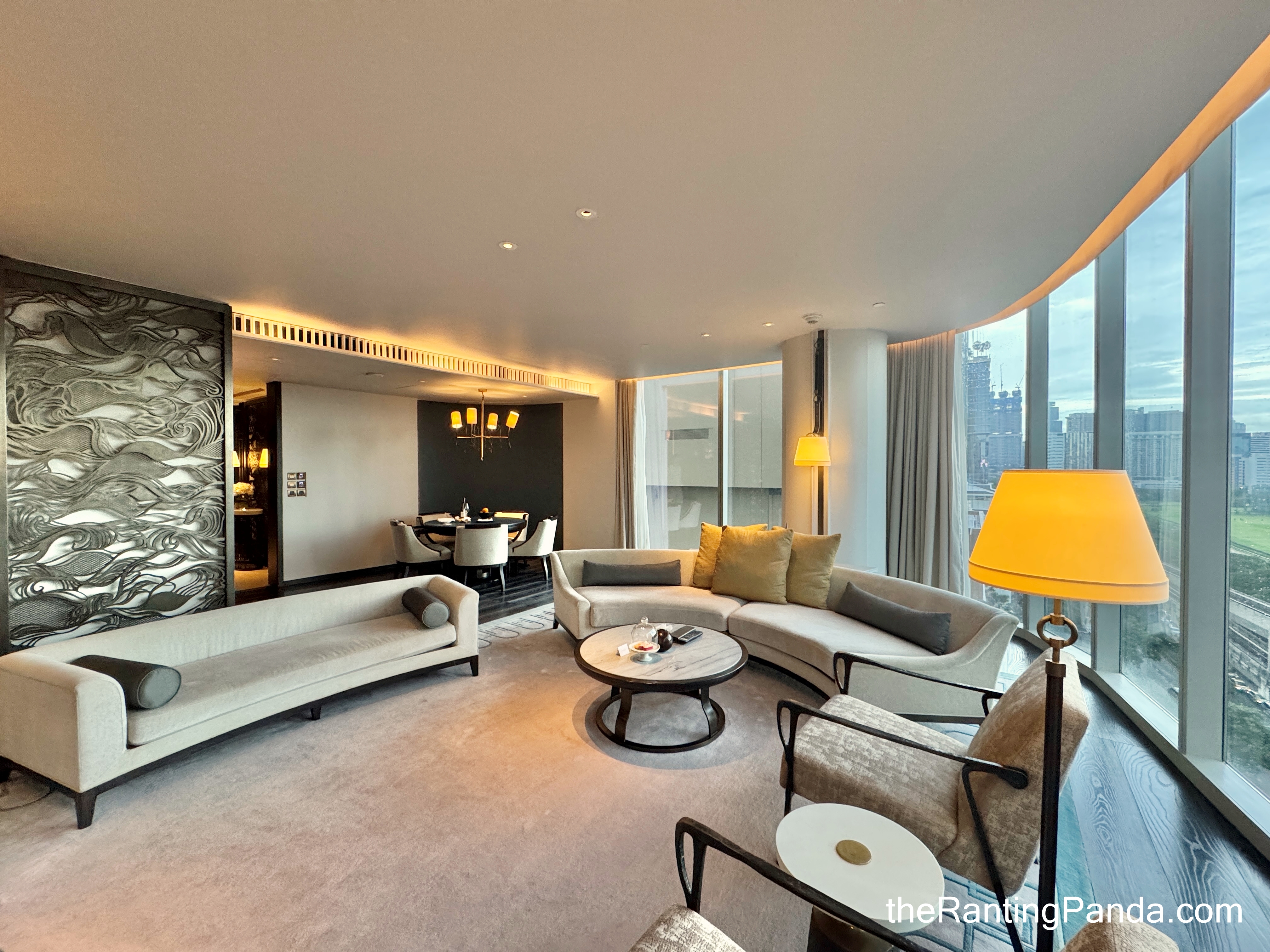 Right from the size of the door entrance itself, it is already much wider than the King Deluxe Room City View. Upon entering the suite, to the right is the spacious living and dining room area with a view of the Royal Bangkok Sports Club. You get floor to ceiling windows so the whole suite is showered with ample natural light.