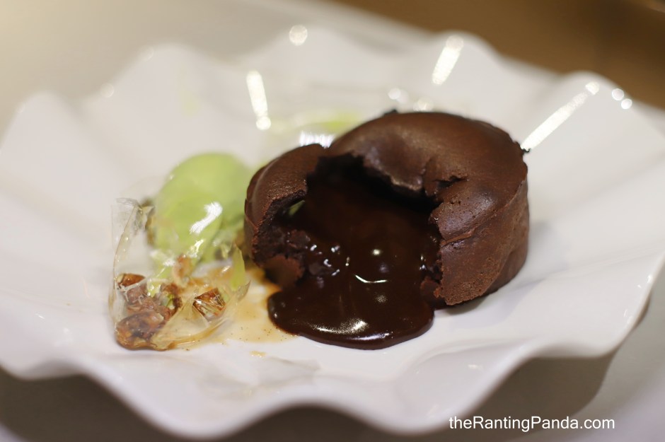 For dessert, I had the Molten Chocolate & Hazelnut Gianduja Cake (S$16) with Pistachio Ice Cream. This sinful treat comes with a rich and dark chocolate lava and a side of Pistachio ice cream. If you want a light and refreshing end to your meal, then this is not for you.