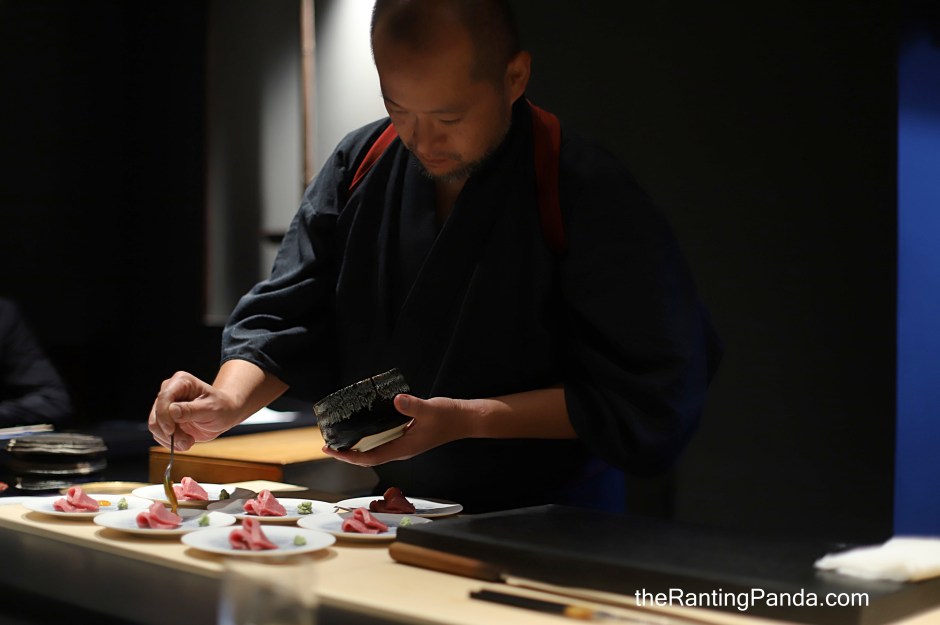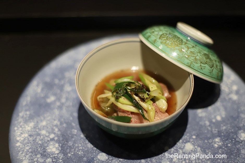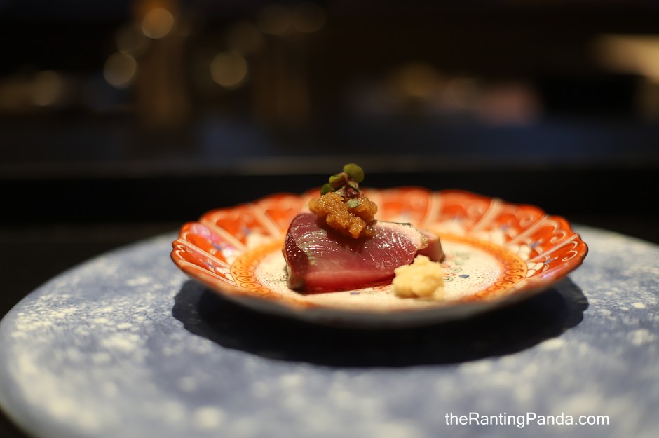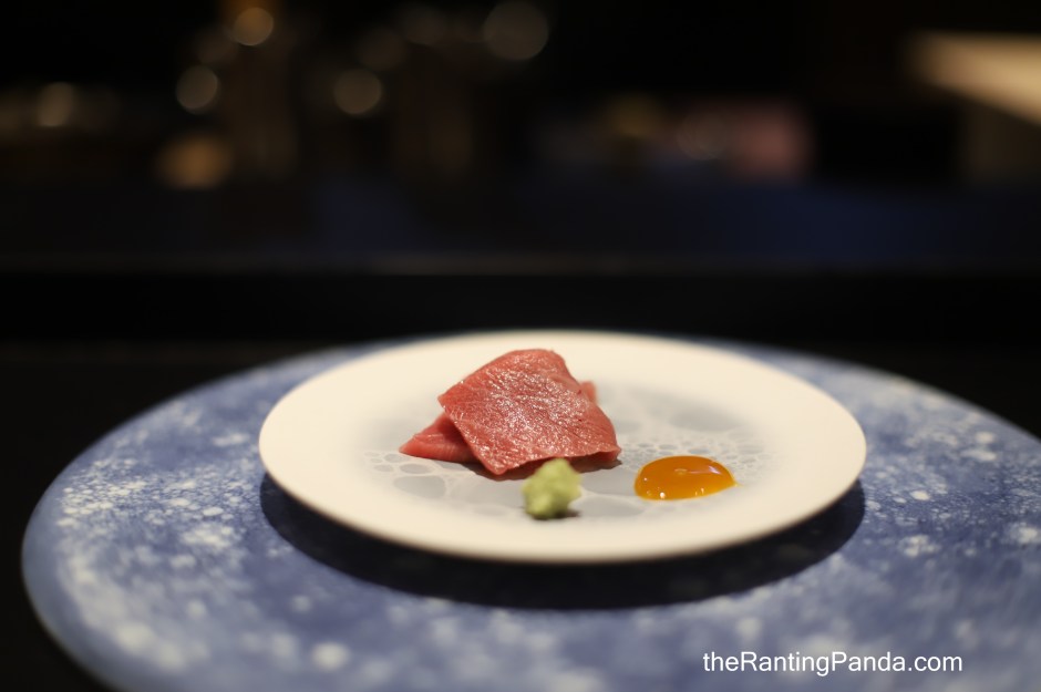Smoked Bonito was served next, followed by aged Bluefin tuna belly with cured egg yolk sauce.