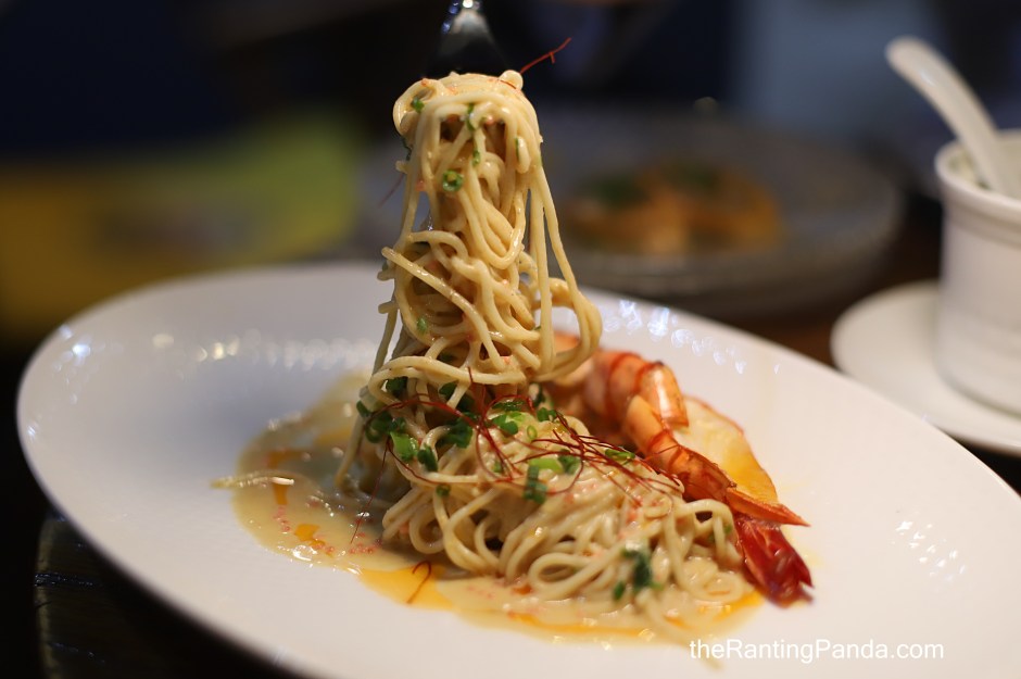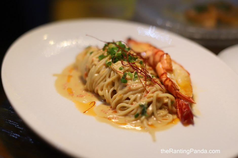 For carbs, I had the Grilled King Prawn with Homemade Noodle (S$32) in Prawn & Tobiko Bisque. The noodle looks like pasta, and the texture of the noodles is soft rather than al dente.