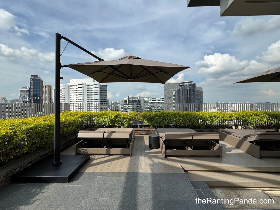 In terms of beds, there are sufficient beds for guests with a view of the pool, or in more private corners with a city skyline view instead.