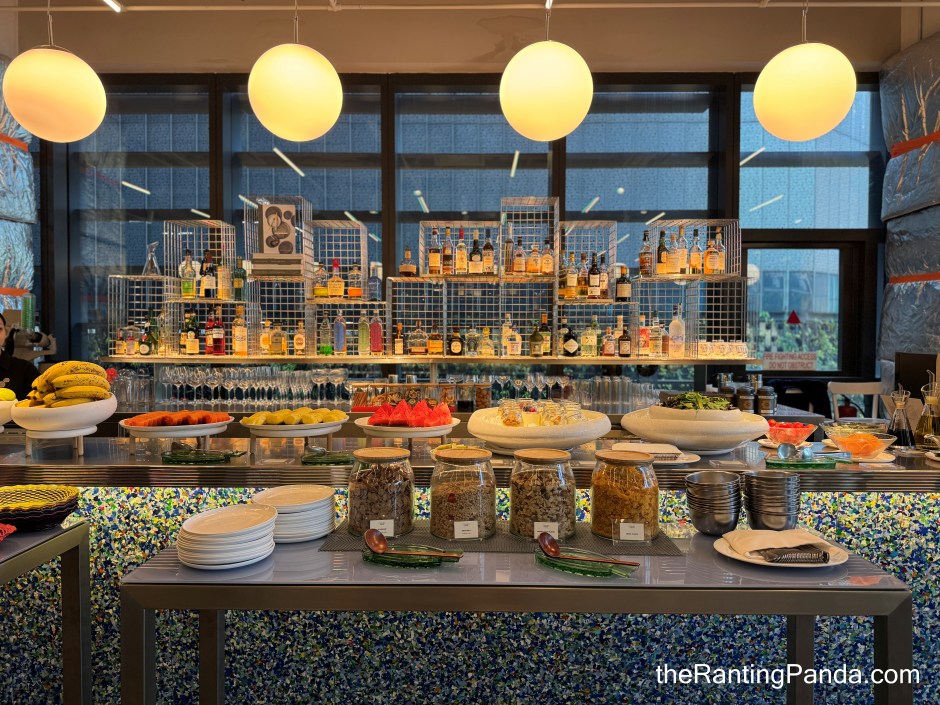 The breakfast features a small buffet spread where you can grab fruits, healthy snacks like oats, banana cake, and more. It is not the typical hotel buffet spread with a wide range of local and international delights.