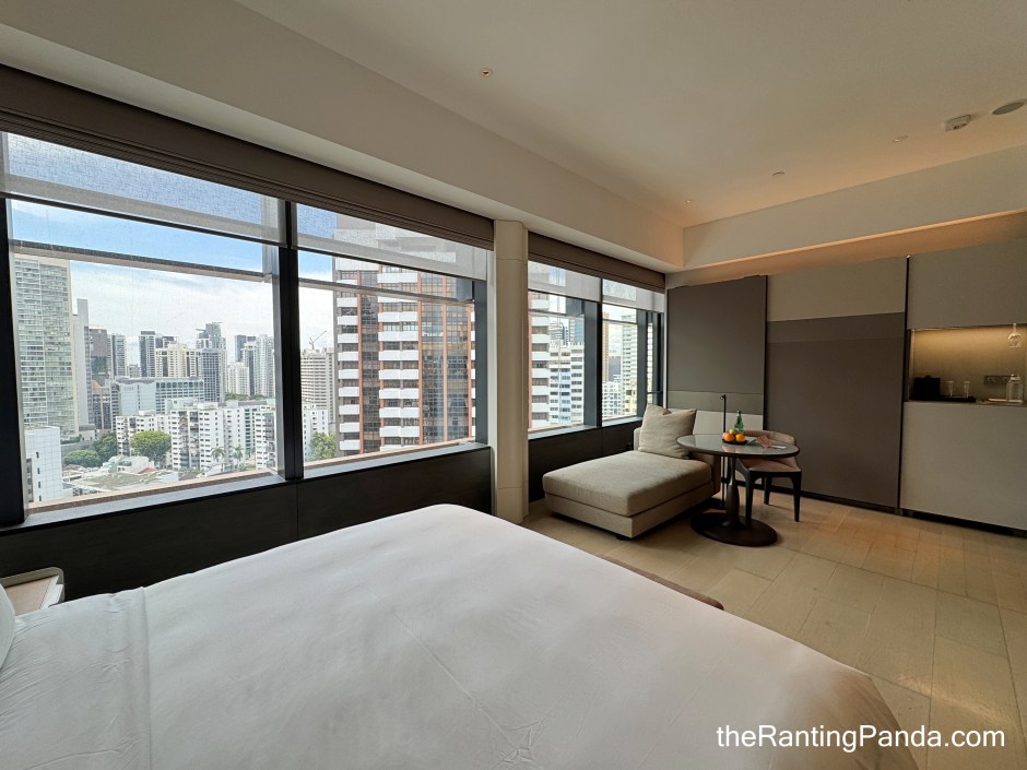 Each room features clean-lined, customised furnishings from Giorgetti, where I stayed at the Emerald Room (36m2) which comes with a city view.